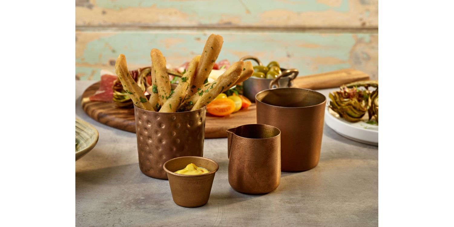 Add a touch of bold, industrial flair to your food presentation with our Copper Vintage Steel Collection. Crafted from high-quality stainless steel with a distinctive copper PVD coating, this collection combines durability and style, offering a unique, vintage-inspired finish that enhances any dish. Perfect for both casual and upscale dining settings, these pieces provide a sophisticated yet rugged look that complements a variety of cuisines.