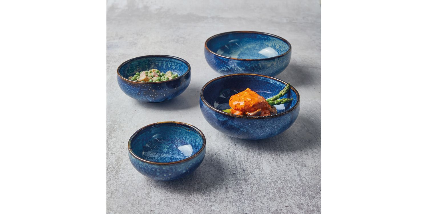 Terra Porcelain's undefined beauty is crafted through natural effects and spontaneous reactions that occur in the kiln. A unique glaze formula, combined with high-temperature firing, ensures no two pieces look exactly alike, with variations in color intensity creating a truly distinctive appearance. The Aqua Blue Terra Porcelain collection draws inspiration from the depths of the ocean, blending rich and soft blues to evoke a tranquil, natural aesthetic. This range provides the perfect canvas for presenting delicious, vibrant dishes.