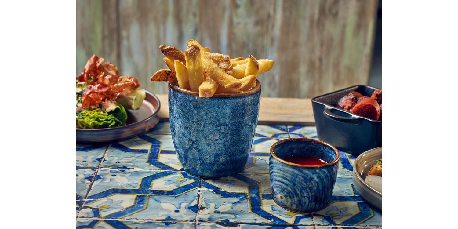 Terra Porcelain's undefined beauty is crafted through natural effects and spontaneous reactions that occur in the kiln. A unique glaze formula, combined with high-temperature firing, ensures no two pieces look exactly alike, with variations in color intensity creating a truly distinctive appearance. The Aqua Blue Terra Porcelain collection draws inspiration from the depths of the ocean, blending rich and soft blues to evoke a tranquil, natural aesthetic. This range provides the perfect canvas for presenting delicious, vibrant dishes.
