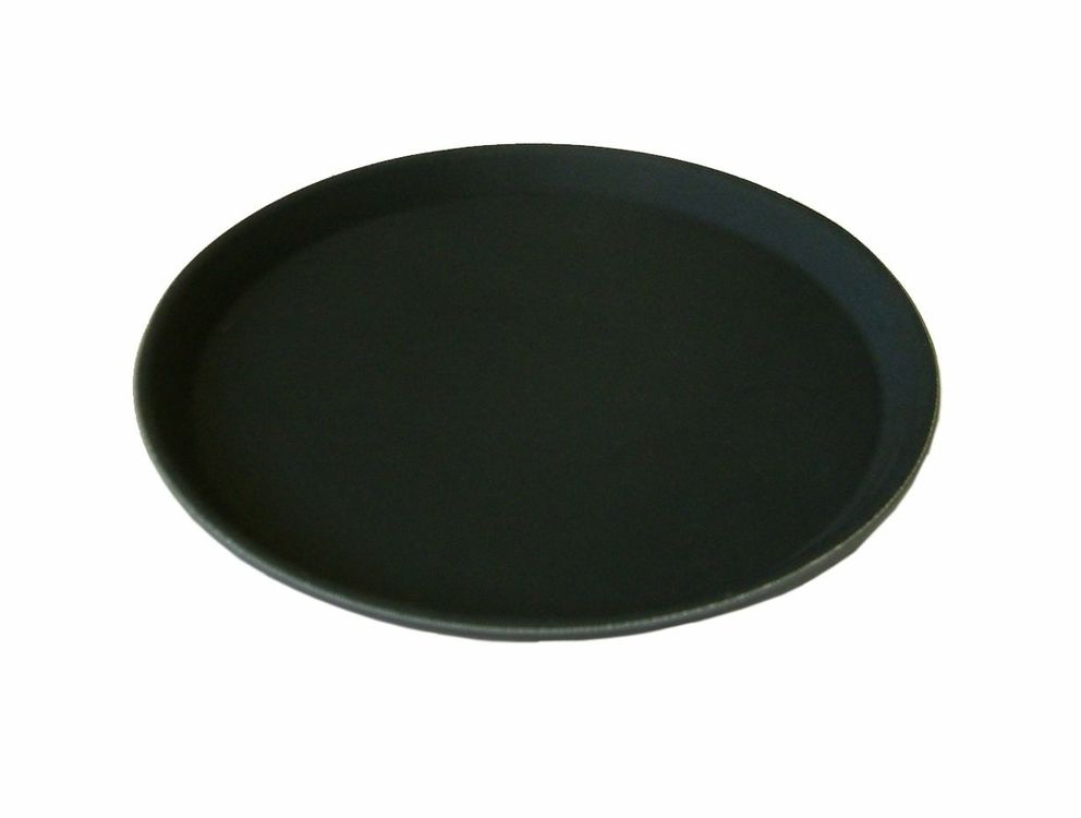 Keep a good grip on your glasses with the Beaumont 16" Round Black Non-Slip Tray. This simple yet practical tray features a non-slip bar, which will help to keep your drinks and glasses safe and secure while transporting.