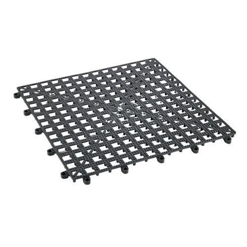 Constructed from durable, non-slip plastic, this 13-inch square bar tile provides a reliable surface for glassware storage and drying. The interlocking design allows for seamless coverage across back-bar shelving or counter-tops, creating a stable and hygienic platform that protects both the shelf surface and delicate glassware from impact.