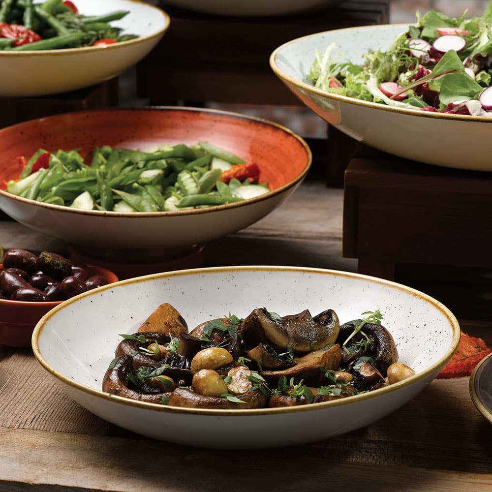 Ideal for showcasing hearty and wholesome cuisine, Stonecast crockery adds a relaxed yet creative flair to any table. From vibrant roasted vegetable medleys to comforting classics like cottage pie or apple crumble, the natural tones emphasise the beauty of the food, enhancing both its presentation and appeal.