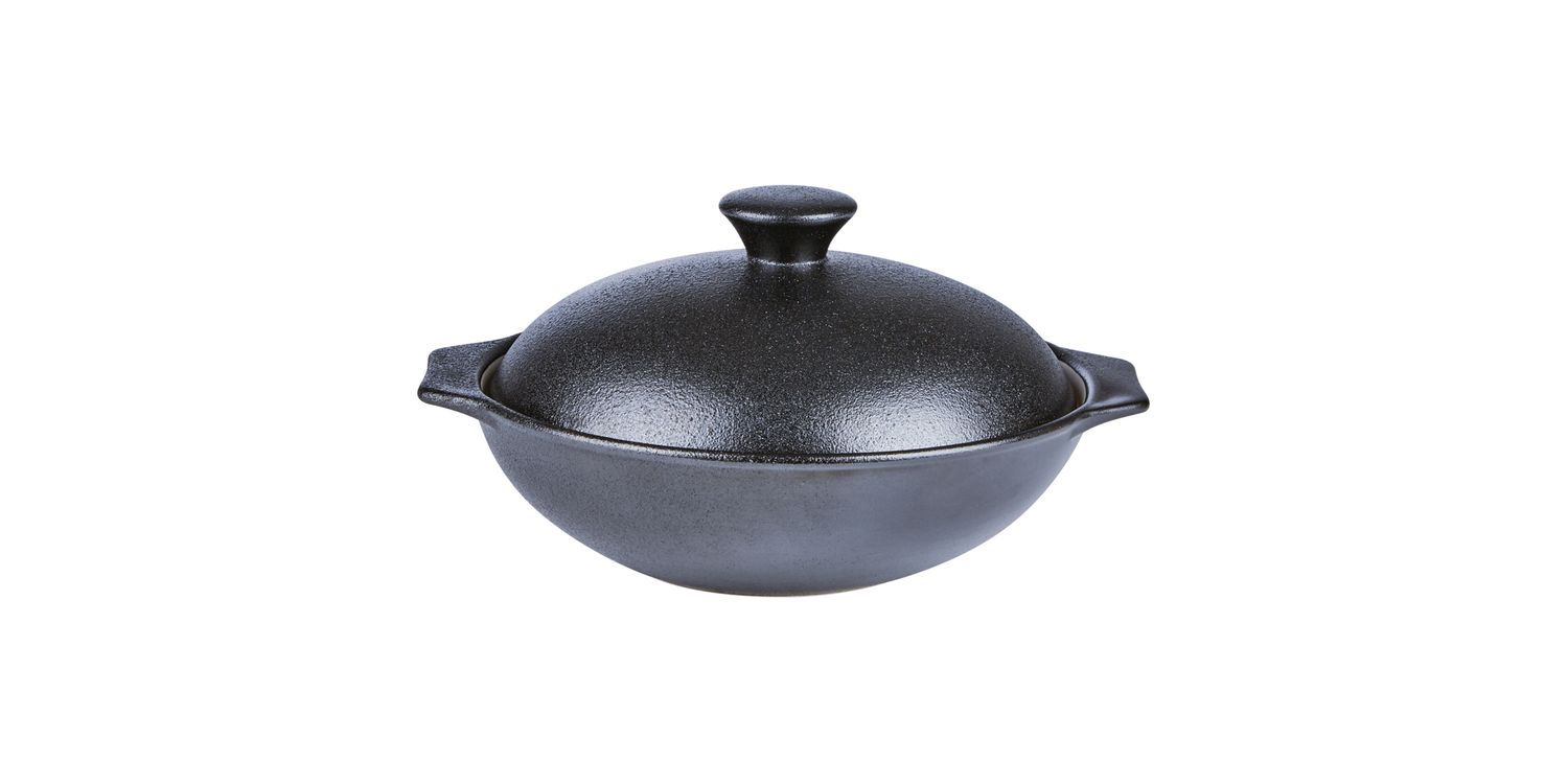 Ideal for serving bold, flavour-packed dishes, this cast iron effect wok bowl with lid offers a distinctive, modern presentation solution with the durability to match. Crafted from porcelain with a matte black finish, it combines the aesthetic of cast iron cookware with the convenience of lighter, easy-care materials—perfect for stir fries, noodle dishes, or rice-based mains.