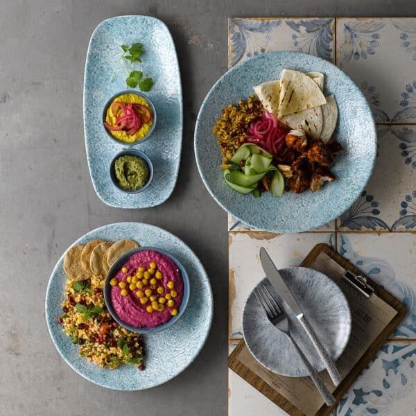 • Available in the Aquamarine colourway on two deep plates and two oblongs