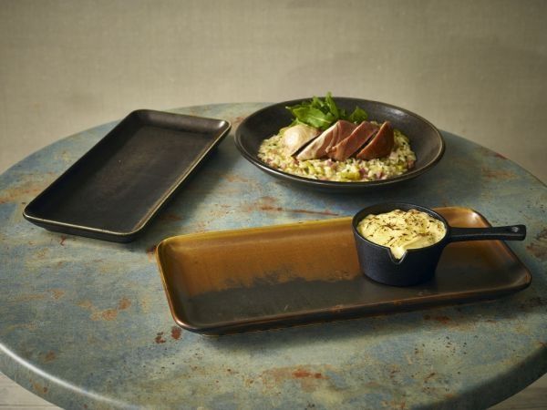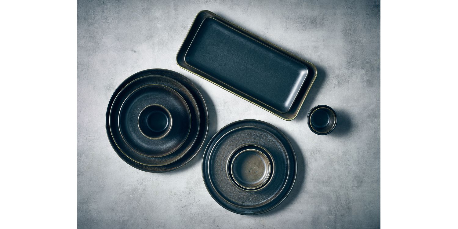 Terra Porcelain's undefined beauty is crafted through natural effects and spontaneous reactions that occur in the kiln. A unique glaze formula, combined with high-temperature firing, ensures no two pieces look exactly alike, with variations in color intensity creating a truly distinctive appearance. The Cinder Black Terra Porcelain collection draws inspiration from the elegance of raw landscapes, featuring deep charcoal and subtle earthy tones that create a bold yet sophisticated aesthetic. This range provides the perfect canvas for presenting delicious, vibrant dishes.