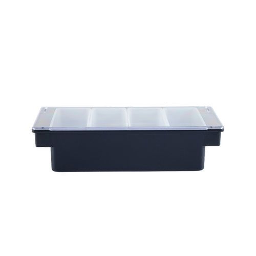 Keep your garnish station organised with the DPS Barware Black 4 Part Plastic Condiment Holder. With four generous 1 pint inserts and a clear hinged lid, it keeps sliced citrus, berries and herbs fresh, visible and ready for service in busy bars, pubs, hotels and event spaces.