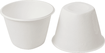 Offer your customers an Eco-friendly way to enjoy a variety of dips, hot and cold foods such as coleslaw, peas, baked beans or sauces with these 4 oz Bagasse Sauce Containers. These containers are the larger of the 2 Bagasse sauce pots that are available with a generous 4 oz depth, making them perfect for takeaway establishments, street food market vendors, chip shops and more.