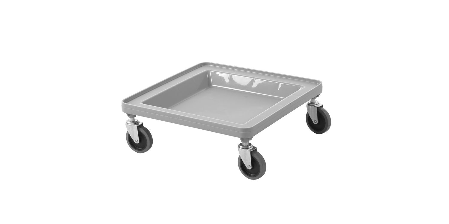 The Amerbox Rack Dolly without Handle is a sturdy trolley designed for transporting warewashing baskets securely. Its long-lasting polypropylene construction, paired with heavy-duty rubber castors, ensures smooth movement over any surface. The dolly features a 3cm overlap area that fits all standard 500x500mm baskets, sealing from the bottom to keep dirt, bacteria, and contaminants out. This makes it ideal for maintaining sanitary conditions during storage and transportation.