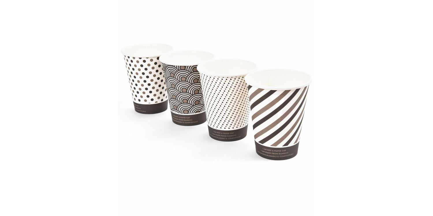 These medium 12oz mixed design, single wall bamboo paper cups come in 4 attractive designs to ensure that your hot drinks are served with style and are the perfect choice for an eco friendly party or for the coffee to go market.