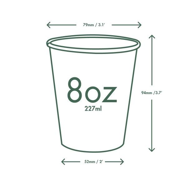 Single wall hot cup. Fits Vegware's 79-Series lids. For coffee, tea and all hot drinks, or soup to go. Also ideal portion control for chips or fried treats. Sustainably-sourced board with a plant-based PLA lining. Crisp white, with Vegware messaging in green. Award-winning quality by Vegware, made from plants. Designed for industrial composting; recyclable in coffee cup recycling schemes – check your local options.