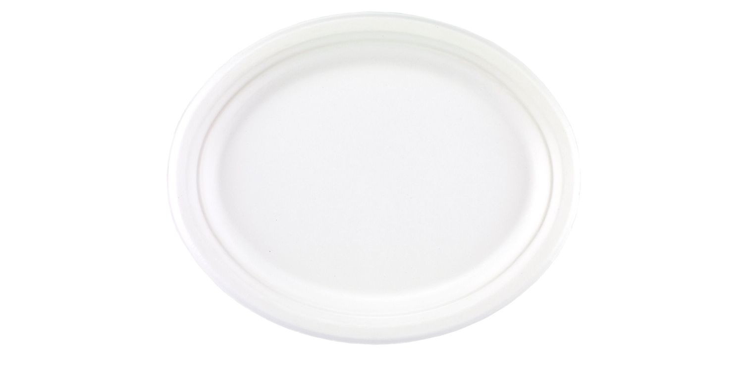 Made from 100% sugar cane fibre, these 10" x 12" bagasse oval plates offer a practical disposable solution for buffets, outdoor catering and main meal service. The oval format gives you a little more plating space, while the sturdy construction helps handle hot, cold, wet and oily foods with confidence.