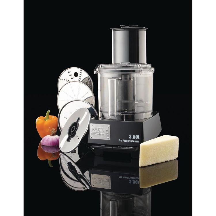 The Waring WFP14SK Commercial food processor is capable of chopping, grinding, mixing and pureeing a large range of foods fast, thanks to its extra large feed chute and powerful commercial motor. The sturdy bowl is made to last and is both scratch and shatter resistant. Its components are dishwasher safe, whilst the pulse function allows excellent processing control. The innovative design and strong construction means this food processor is capable of slicing 272kg of cucumber an hour, shredding 113kg of carrots an hour and grating 20.5kg of cheese an hour.