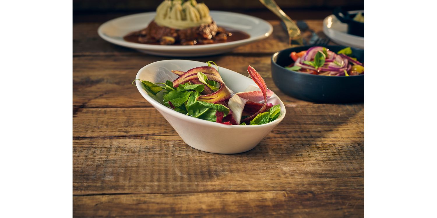 Crafted from fully vitrified porcelain, the collection meets the stringent standards of BS4034, ensuring low water absorption for enhanced hygiene, superior resistance to thermal shock, increased strength, and excellent heat retention. Designed to withstand the rigours of professional kitchens, many items feature rolled edges and reinforced rims for added chip resistance.