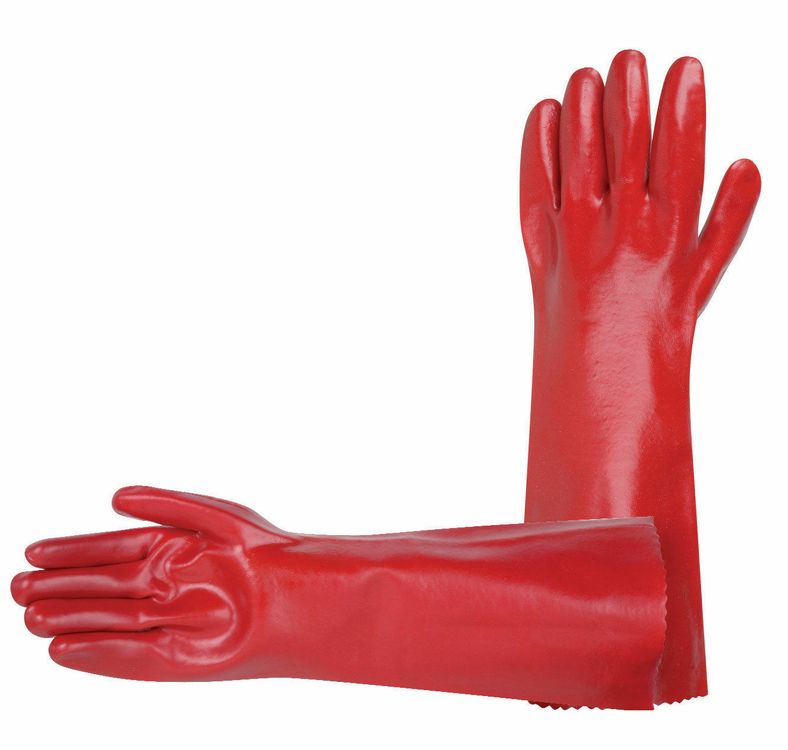 Protect your hands and forearms while cleaning with these PVS Dip Red Gauntlet Gloves. These durable gloves are perfect for a range of industrial processing and public utilities tasks and provide maximum protection and great resistance to abrasion, tear and hazards.