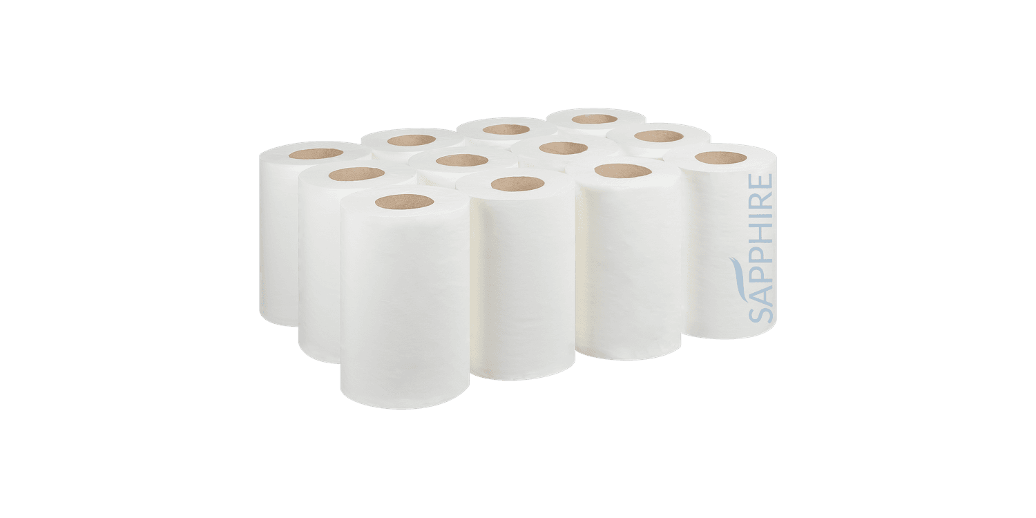 These Mini Centrefeed Rolls are a brilliant substitute to standard sized centrefeed rolls and fit in most dispensers. These small rolls of paper are generally used for cleaning and wiping in various settings such as kitchens, bathrooms, and workshops. They are made from a single layer of absorbent paper and are designed to fit into a dispenser that allows for easy tearing of individual sheets, making them an economical and practical choice for any busy service that requires quick cleaning.