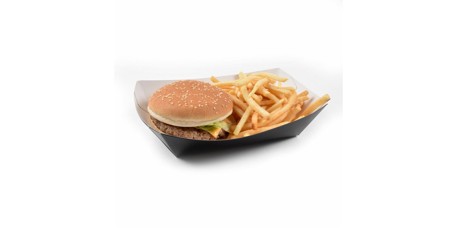 A larger tray, perfect for meals and dishes served on the go, these Black Large Meal Trays don’t feature a plastic lining, making them a great eco-friendly option.