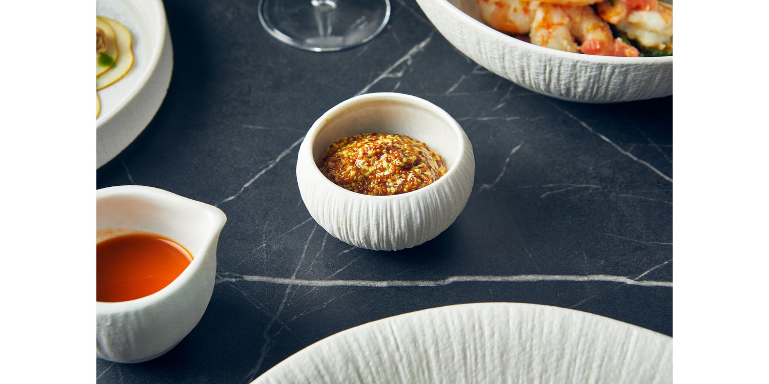 The Incise Porcelain Lucine collection features an elegant series of gourmet dishes, finished with a refined textured matt white glaze and embossed design for added sophistication. The centre of each plate showcases a stunning reactive pearlescent glaze, creating a captivating focal point. Perfect for upscale settings, this range blends striking aesthetics with practical design, allowing chefs to create visually stunning and memorable presentations for any occasion.