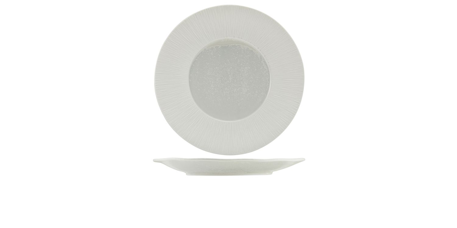 The Incise Porcelain Lucine collection features an elegant series of gourmet dishes, finished with a refined textured matt white glaze and embossed design for added sophistication. The centre of each plate showcases a stunning reactive pearlescent glaze, creating a captivating focal point. Perfect for upscale settings, this range blends striking aesthetics with practical design, allowing chefs to create visually stunning and memorable presentations for any occasion.