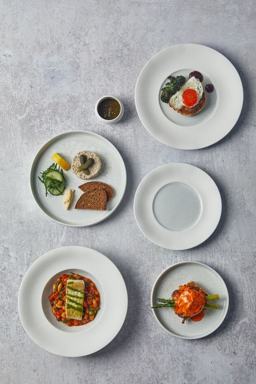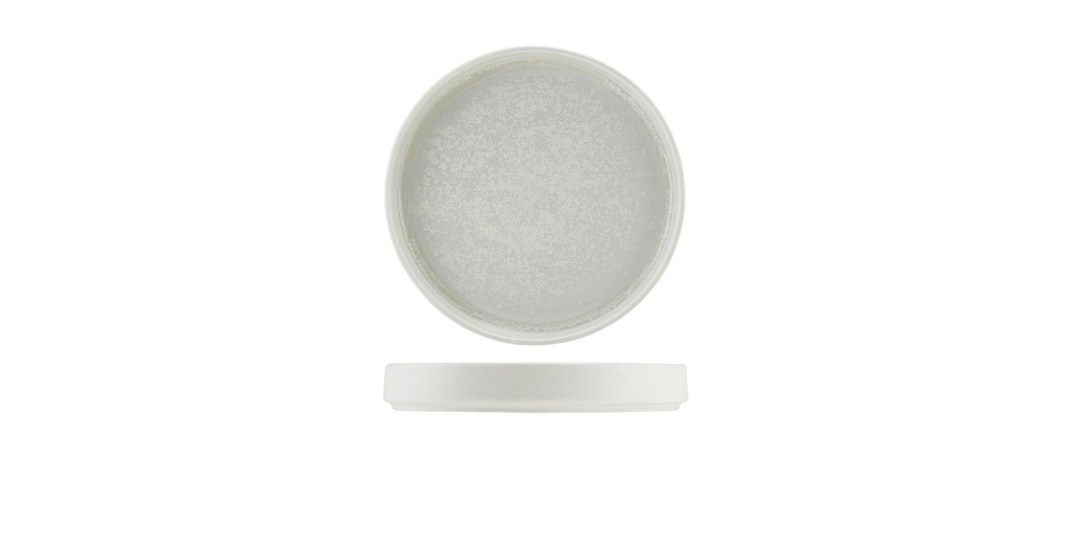 The Incise Porcelain Lustre collection features an elegant series of gourmet dishes, finished with a refined textured matt white glaze for added sophistication. The centre of each plate showcases a stunning reactive pearlescent glaze, creating a captivating focal point. Perfect for upscale settings, this range blends striking aesthetics with practical design, allowing chefs to create visually stunning and memorable presentations for any occasion.