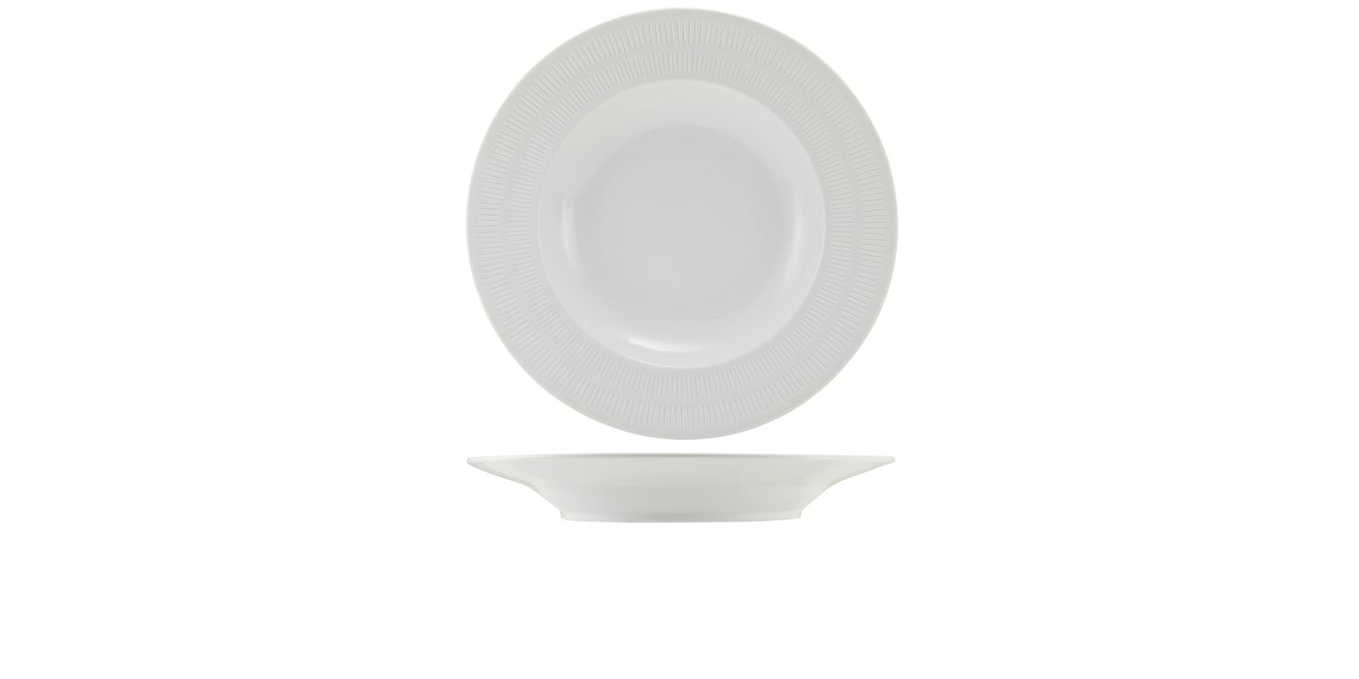 The Incise Porcelain Solara collection features an elegant series of gourmet dishes, adorned with a sumptuous embossed design, adding texture and sophistication to food presentation. Perfect for upscale settings, this range blends striking aesthetics with practical design, allowing chefs to create visually stunning and memorable presentations for any occasion.