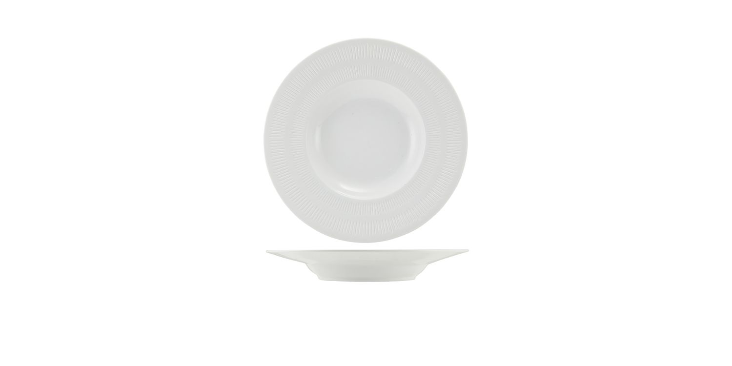 The Incise Porcelain Solara collection features an elegant series of gourmet dishes, adorned with a sumptuous embossed design, adding texture and sophistication to food presentation. Perfect for upscale settings, this range blends striking aesthetics with practical design, allowing chefs to create visually stunning and memorable presentations for any occasion.