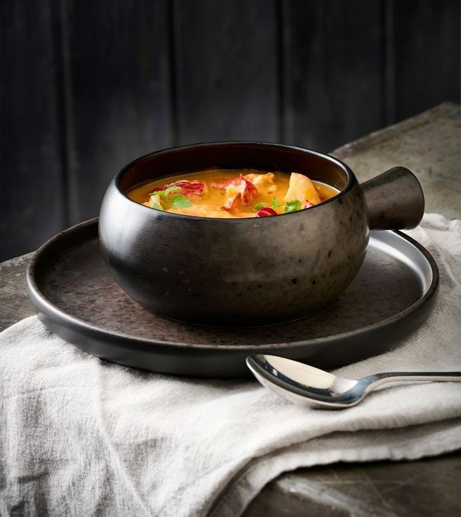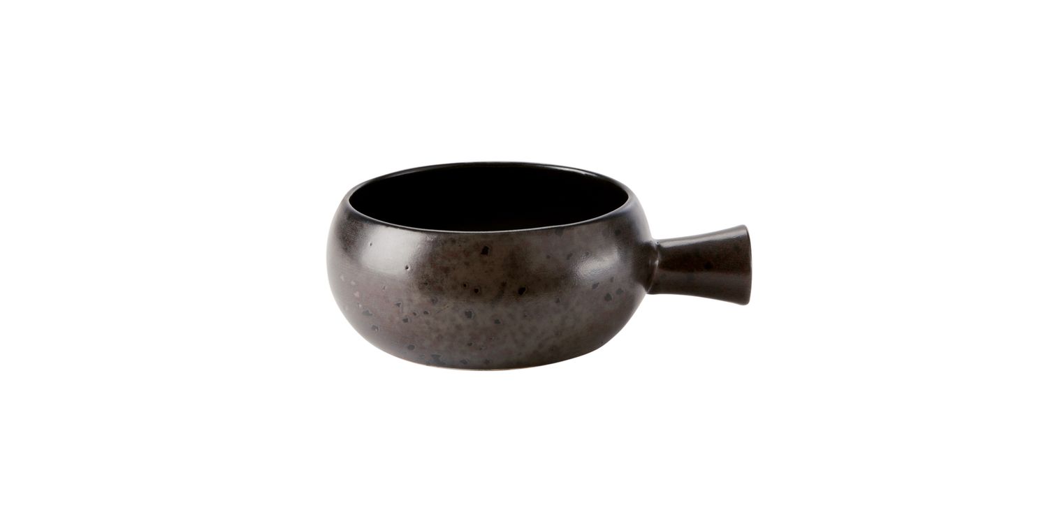 Part of the acclaimed Ironstone stoneware collection, this handled bowl pairs a rustic, reactive glaze with the strength needed for busy service. Each piece is subtly different, giving a hand finished look yet still delivering the everyday practicality chefs and caterers rely on.