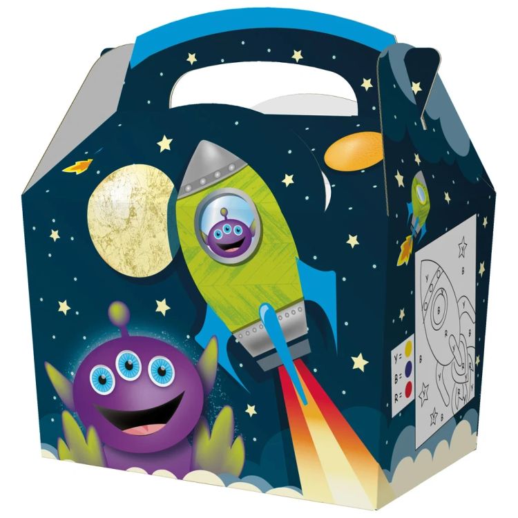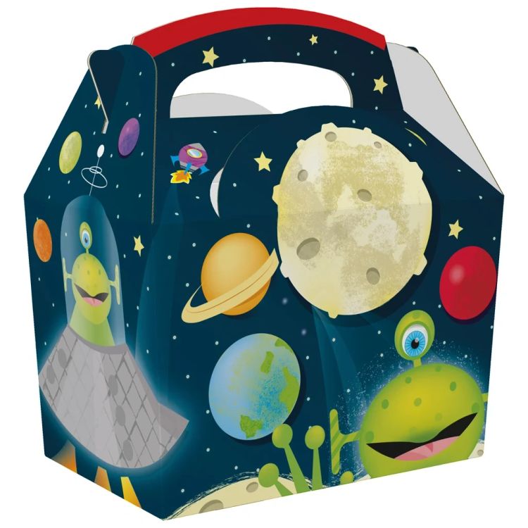 These ‘Space Aliens’ paperboard kids boxes are extremely versatile.  They can be used as takeaway boxes for children's fast food meals, party food boxes, activities or even as party favours for children to take home.  Optimum protection for food items and snacks.