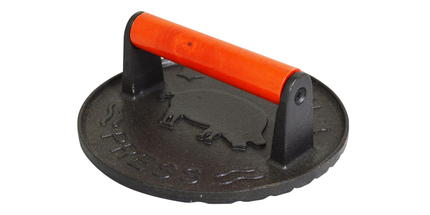 If you like your burgers to look as good as they taste, this round cast iron burger and bacon press is a handy tool for any busy kitchen. The 18 cm plate gives you generous, uniform patties while the natural weight of the cast iron presses meat flat against the pan or grill for quicker, more even cooking.