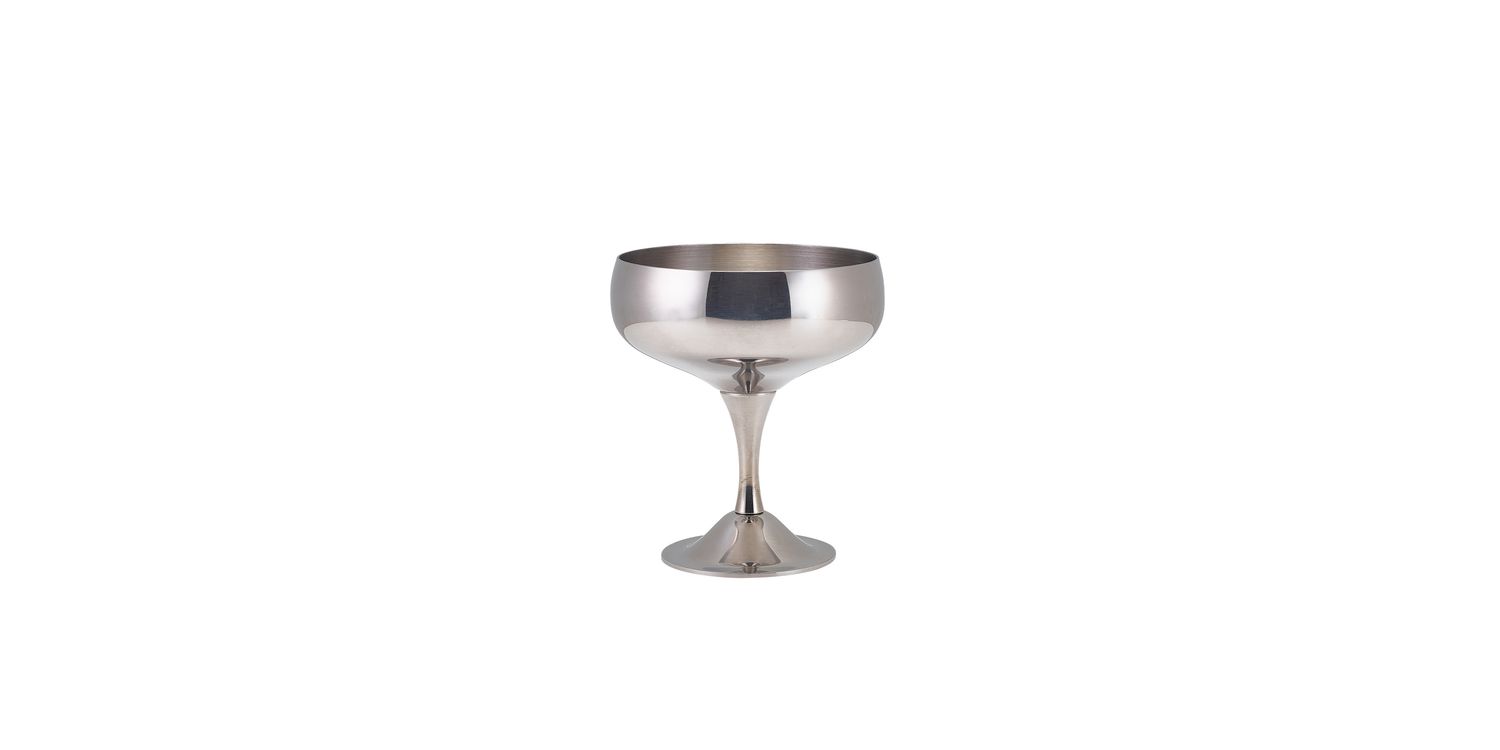 Elevate your dining and drinking experience with the Stainless Steel Coupe Glass, designed for both style and functionality. With its elegant coupe shape, this versatile glass is ideal for serving classic cocktails like champagne, martinis, or other signature drinks, as well as delightful desserts like mousses, sorbets, and layered treats. Crafted from high-quality stainless steel, it combines sophistication with practicality, making it the perfect choice for bars and restaurants.