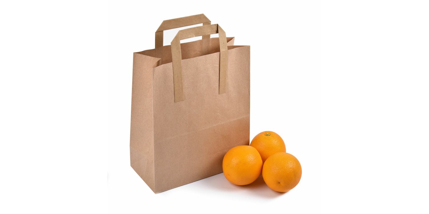 The Brown Kraft Medium paper carrier bags have flat tape handles and are most popular for use in fast food and fashion outlets.
