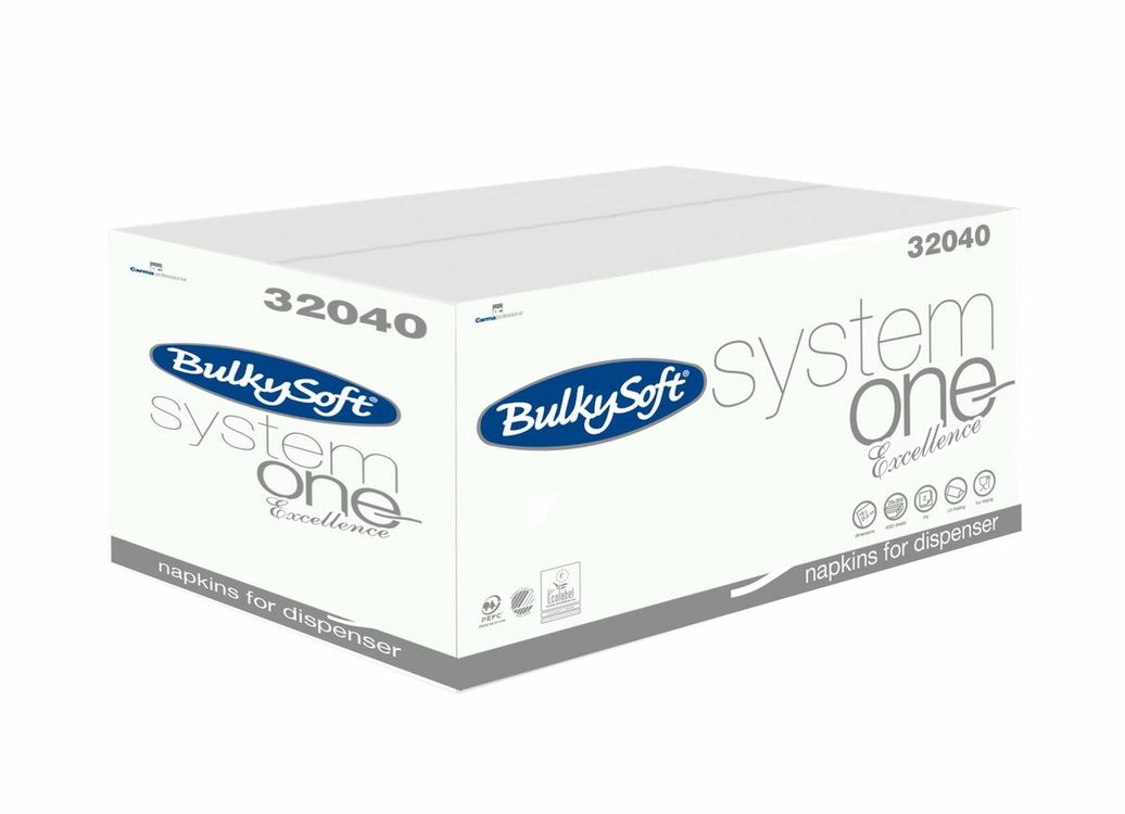 Bulkysoft System One Dispenser Napkins are a competitively priced and high-quality paper serviette.