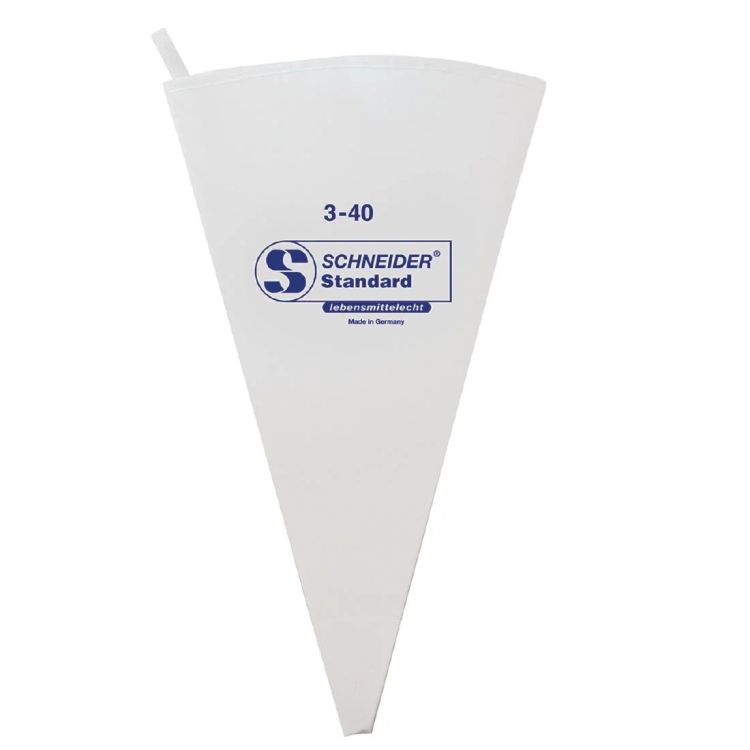 Decorate your cakes and pastries with precision with this 40cm pastry bag from Schneider. The bag is designed with a strong cotton fabric, as well as a special coating and welded seam that ensures durability and strength. The 40cm piping bag is ideally suited to use in both domestic and commercial kitchens.
