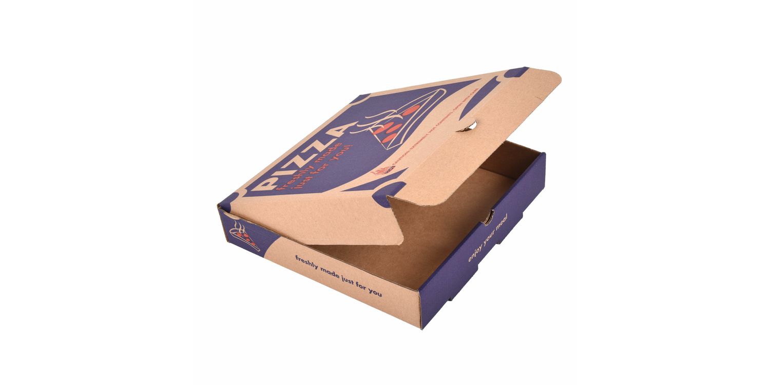 Ideal for Pizzerias, these 9” Pizza Boxes are crafted from brown e-fluted corrugated cardboard with a 2 colour print on the front.