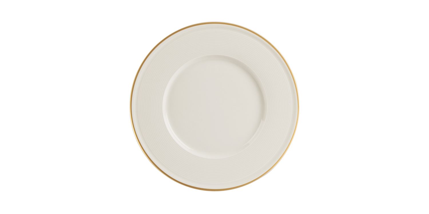 Porland Academy Line Gold Colour Band provides a luxurious take on the original Line collection. The popular classic shapes and styles still feature the concentric, ringed detailing but with the addition of an elegant gold band around the outer edge contributing further to the sophistication of fine dining and banqueting events.