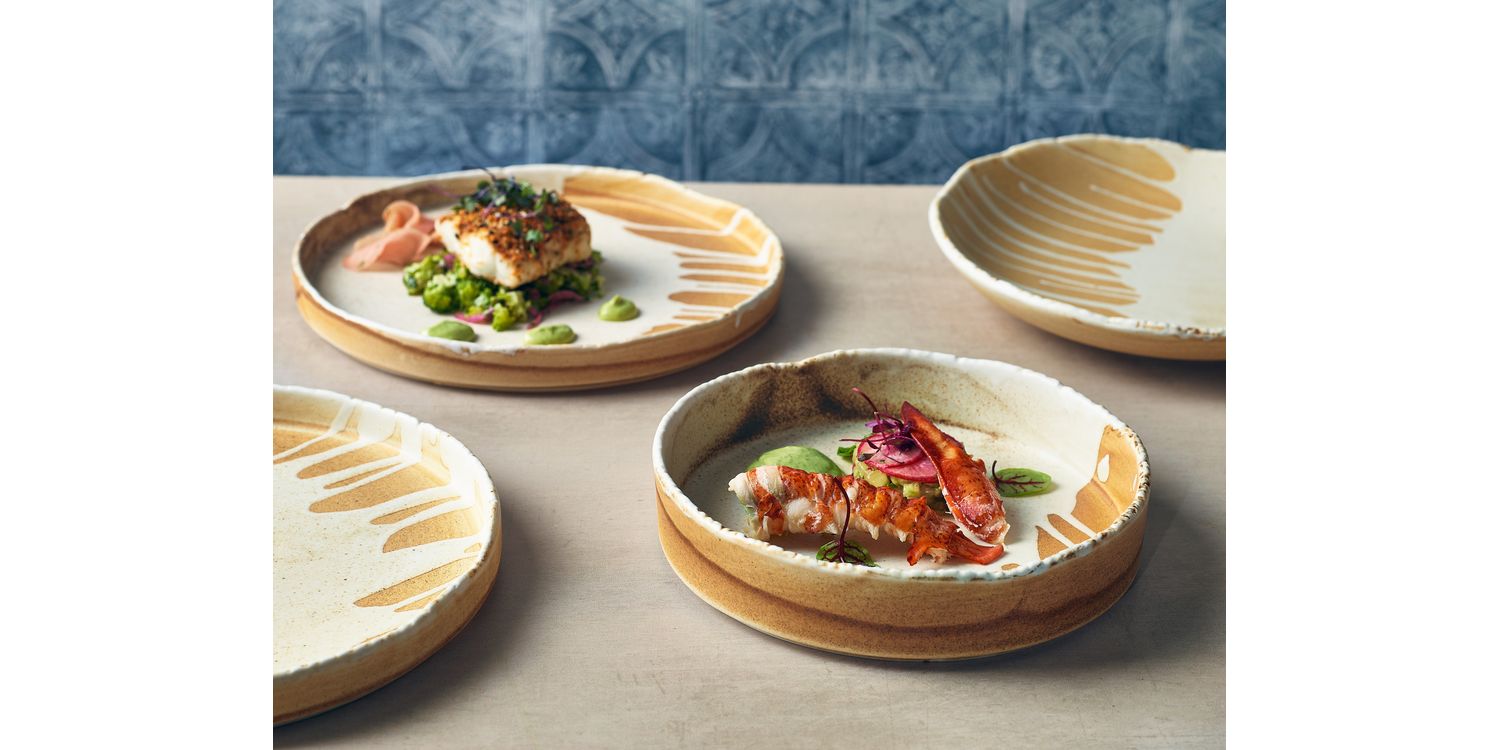 Roko Porcelain is a truly distinctive collection of tableware inspired by the fusion of nature's raw elegance and rustic design. Every piece is a unique blend of organic textures, distinguished patterns, and dynamic shapes, transforming your food into a canvas of artistry.