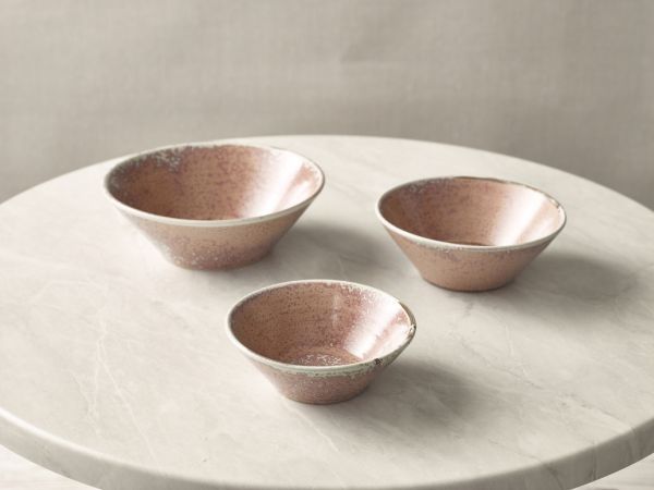 Terra Porcelain's undefined beauty is crafted through natural effects and spontaneous reactions that occur in the kiln. A unique glaze formula, combined with high-temperature firing, ensures no two pieces look exactly alike, with variations in color intensity creating a truly distinctive appearance. The Rose Pink Terra Porcelain collection draws inspiration from delicate floral hues, featuring soft pink tones with subtle reactive variations that create a warm and inviting aesthetic. This range provides the perfect canvas for presenting delicious, vibrant dishes.