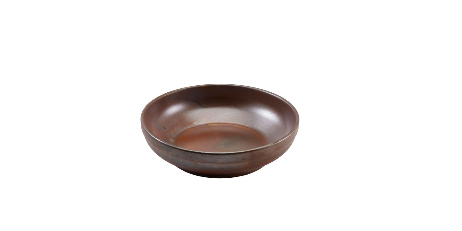 Terra Porcelain's undefined beauty is crafted through natural effects and spontaneous reactions that occur in the kiln. A unique glaze formula, combined with high-temperature firing, ensures no two pieces look exactly alike, with variations in color intensity creating a truly distinctive appearance. The Rustic Copper Terra Porcelain collection draws inspiration from the warm, earthy tones of aged metal, featuring rich copper hues with subtle patina effects that create a rustic yet refined aesthetic. This range provides the perfect canvas for presenting delicious, vibrant dishes.