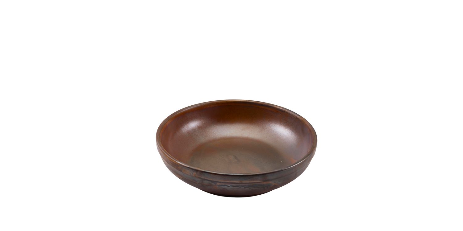 Terra Porcelain's undefined beauty is crafted through natural effects and spontaneous reactions that occur in the kiln. A unique glaze formula, combined with high-temperature firing, ensures no two pieces look exactly alike, with variations in color intensity creating a truly distinctive appearance. The Rustic Copper Terra Porcelain collection draws inspiration from the warm, earthy tones of aged metal, featuring rich copper hues with subtle patina effects that create a rustic yet refined aesthetic. This range provides the perfect canvas for presenting delicious, vibrant dishes.