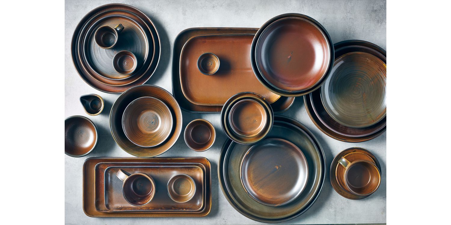 Terra Porcelain's undefined beauty is crafted through natural effects and spontaneous reactions that occur in the kiln. A unique glaze formula, combined with high-temperature firing, ensures no two pieces look exactly alike, with variations in color intensity creating a truly distinctive appearance. The Rustic Copper Terra Porcelain collection draws inspiration from the warm, earthy tones of aged metal, featuring rich copper hues with subtle patina effects that create a rustic yet refined aesthetic. This range provides the perfect canvas for presenting delicious, vibrant dishes.