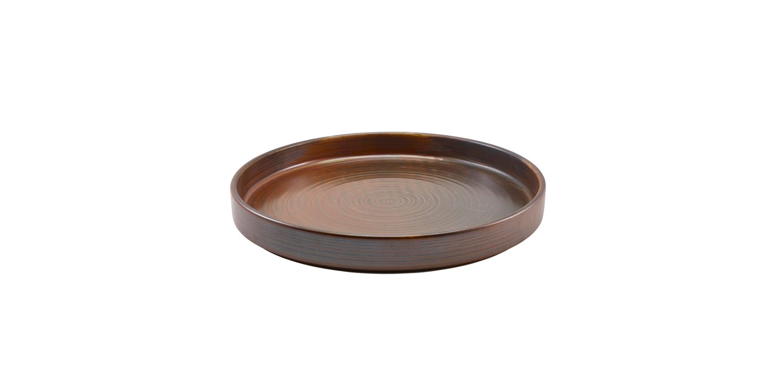 Terra Porcelain's undefined beauty is crafted through natural effects and spontaneous reactions that occur in the kiln. A unique glaze formula, combined with high-temperature firing, ensures no two pieces look exactly alike, with variations in color intensity creating a truly distinctive appearance. The Rustic Copper Terra Porcelain collection draws inspiration from the warm, earthy tones of aged metal, featuring rich copper hues with subtle patina effects that create a rustic yet refined aesthetic. This range provides the perfect canvas for presenting delicious, vibrant dishes.