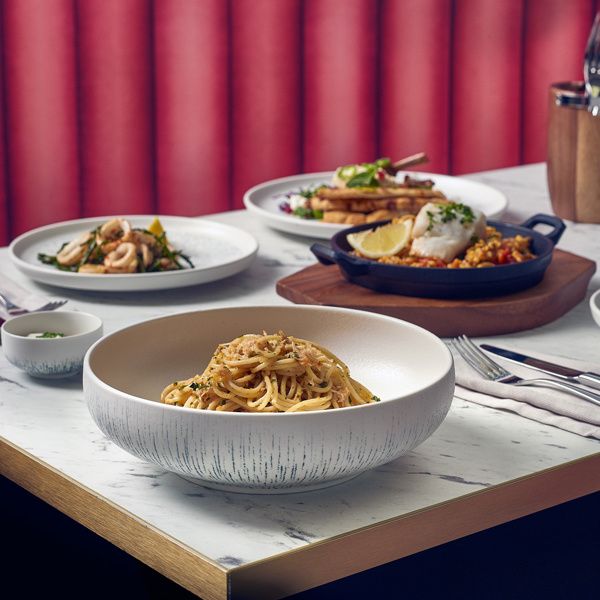 The Sereno Strato collection draws inspiration from the layers and movement of the upper atmosphere. Its natural, sweeping lines evoke a sense of elevation and movement, offering a modern canvas for creative plating.