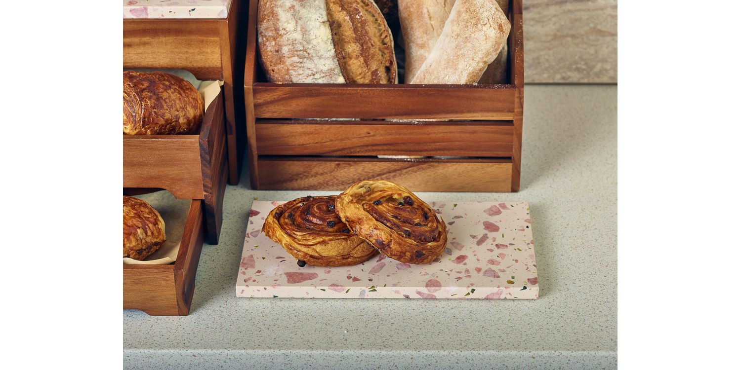 GenWare Terrazzo Platters are a multifunctional product used for buffets, coffee shop displays or tabletop food presentation. The platters are made of terrazzo, a composite material consisting of cement and small marble chips in a variety of colours resulting in individual characteristics across every piece. Terrazzo is a durable and pleasingly vibrant material that will bring a touch of colour to food presentation.- Made from Terrazzo