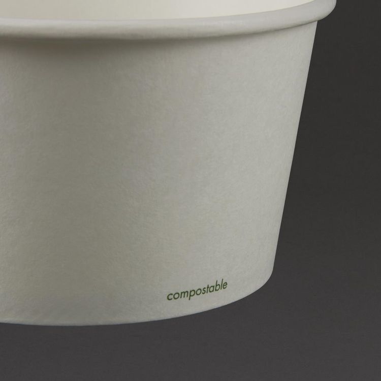 Make small, sustainable changes to your food service with these 12/16oz Vegware compostable food pots. Featuring a plant-based PLA lining and a sustainably sourced paperboard base, these pots are fully compostable within 12 weeks when sent to industrial composting facilities. By sending these pots for composting, you can divert your rubbish away from harmful, expensive landfill sites and into more environmentally friendly waste streams. The materials used to make these pots are also highly renewable, giving you great sustainable alternatives to standard plastic-lined pots.