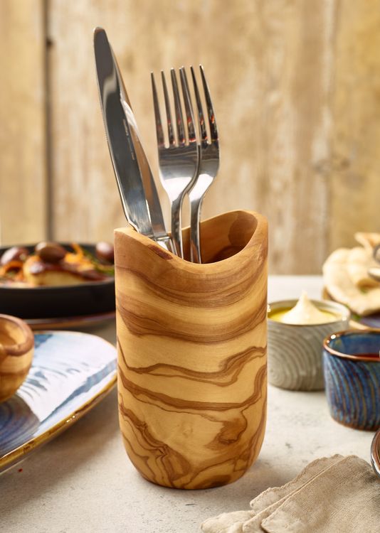 GenWare Olive Wood Cutlery Holder bring the beauty of nature and a rustic charm to your table tops.