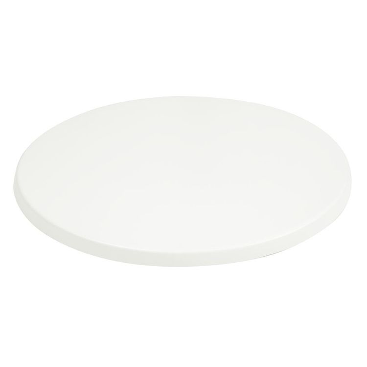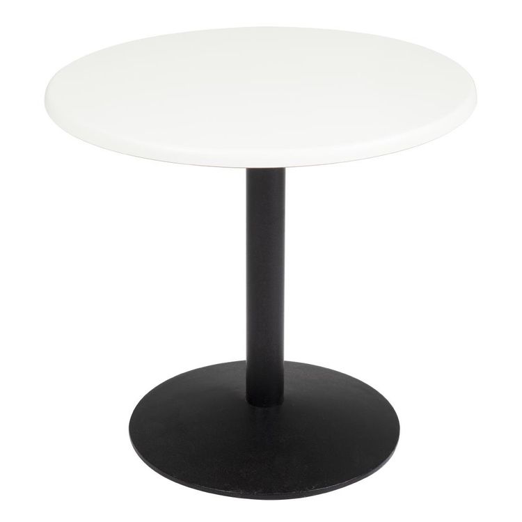Pre-drilled seamless table top, finished in white for a neutral, clean look. Heat and water resistance guards against burns and spills, while the circular design eliminates sharp corners and danger of injury. Great for use indoors in cafes, canteens and restaurants.